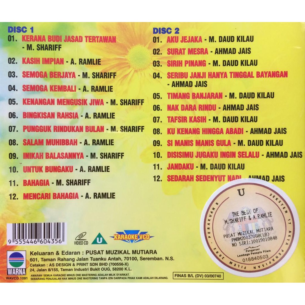 Vcd Kalaoke The Best Of M Shariff A Ramlie Ahmad Jais M Daud Kilau Bintang 60an Shopee Malaysia