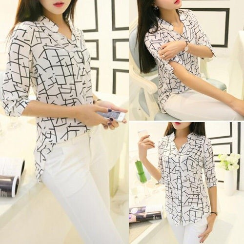 Wanita Fesyen Korea 3 4 Sleeve Kemeja Baju Cantik Elegant Shopee Malaysia