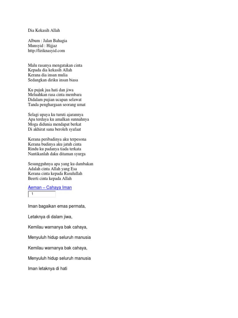 Sesungguhnya apa yang ku dambakan adalah cinta allah yang esa kerana cinta kepada rasulullah beerti cinta kepada allah. Kerana peribadinya aku terpesona kerana budinya aku jatuh cinta rindu ku padanya tiada terkata nantikanlah daku ditaman syurga sesungguhnya apa yang ku dambakan adalah cinta allah yang esa kerana cinta kepada rasulullah beerti cinta kepada allah lagu. Dan oleh kerana itu aku kembali hari demi hari terpesona.